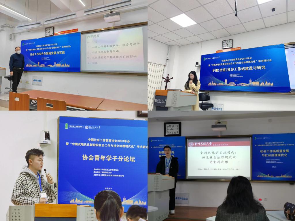 娄世桥副教授以“社会工作实务再认识”为题进行小组发言,并获得中国社会工作教育协会2023年会征文二等奖;向颖的发言论文“双重生产的合法性获取机制——项目制下社会组织‘中标’何以可能”荣获第五届青年学者分论坛征文二等奖;汤皓然以“陪伴、链接与颠倒的实践感:环境治理中社会工作者的角色形塑过程”为题进行发言,并担任单元主持人。同时,论文荣获第五届青年学子分论坛征文一等奖;顾化杰在分论坛1,以“空间思维的实践转向:回迁社区治理现代化的空间之维”为题进行发言;阳忠艳以“‘六社’协同:社工站参与社区治理的路径”为题在分论坛13进行发言。