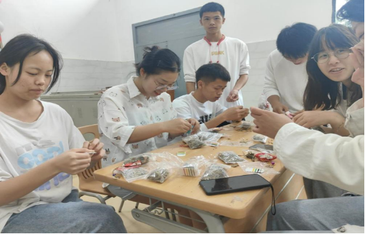 活动现场,同学们相互学习并认真开始制作。叠粽叶、折漏斗、装糯米、包好缠线,大家都仔细操作,相互帮忙,生怕出现破损。通过彼此的协同互助,增进了同学们之间的情感纽带。