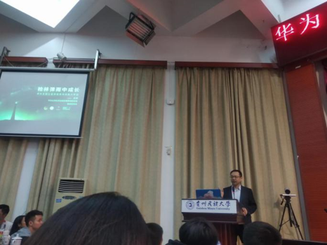站在花溪校区十五号楼圆形会议室举行。主讲人为华为公司公共及政府事务部副总裁、首席研究员彭勇先生,讲座由校团委李建玲副书记主持,胡斌副书记、校团委团干以及全校师生代表共计400余人参加。社会学与公共管理学院由团委负责人袁迎春老师带队,35名学生代表参加。