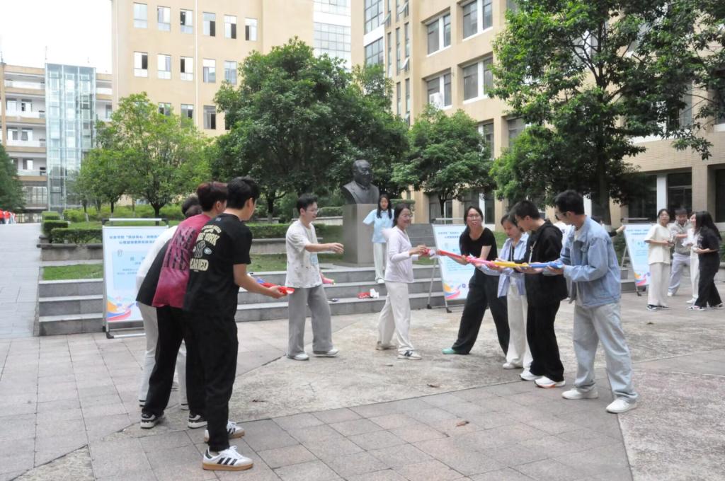 费孝通广场顺利开展“跃动身心·向阳而生”心理健康素质拓展活动,此次活动设置团队项目和个人项目两种形式。团队项目包含跳长绳、拔河、珠行万里等三个竞赛,个人项目包含手忙脚乱、摸石过河两个竞赛。