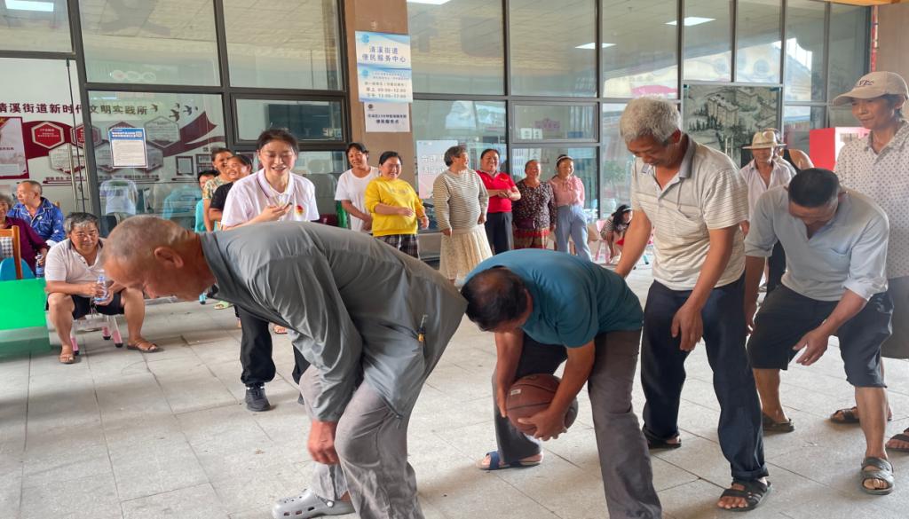 居民们以五人为一组,在“传递篮球”环节中,当篮球在手中传递,默契悄然滋生。
