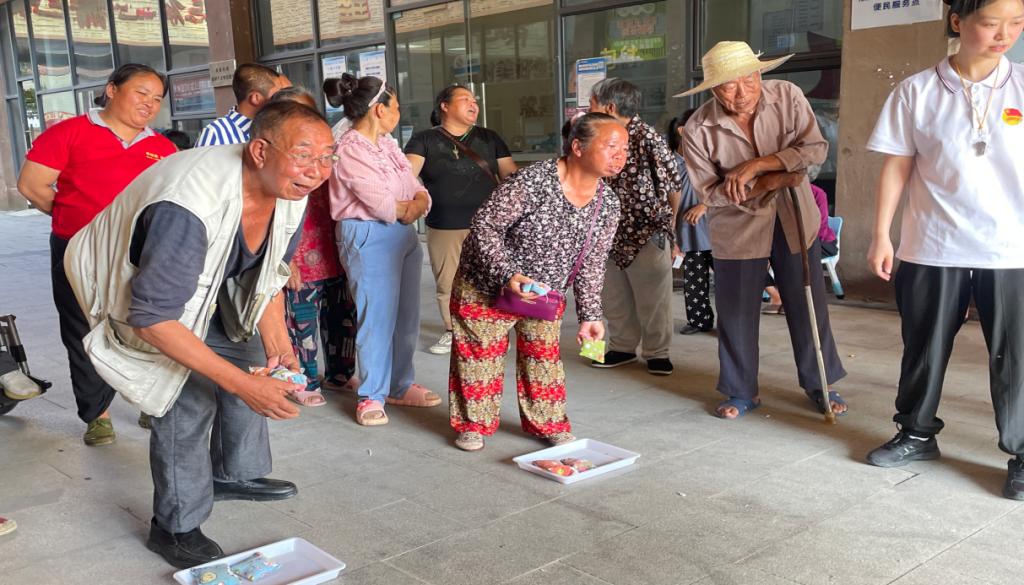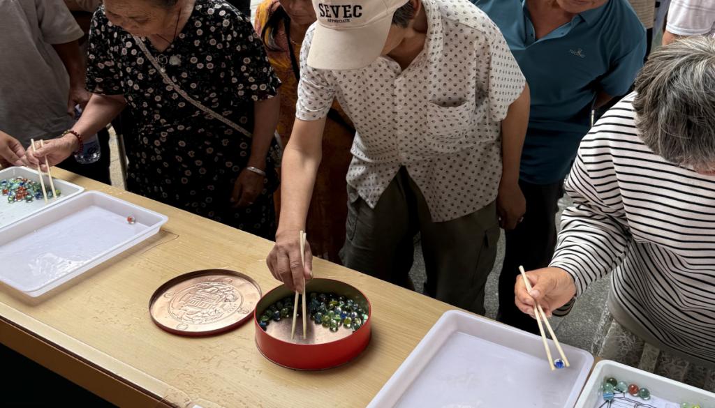 “跳动玻璃球”考验手部灵活性,过程中老人和残障居民都能在其中获得自我突破,趣味横生的场面引得围观居民笑声连连。