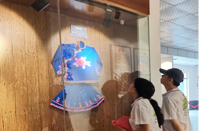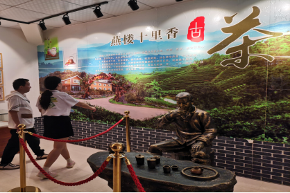 踏入旧盘村苗族文化传习展示馆,浓郁的民族风情扑面而来,馆内陈列着精美的苗族服饰,墙壁上悬挂着苗药介绍展板,充分彰显出人民智慧与深情。绘有古朴颜料的土陶碗,芬芳四溢的燕楼十里香茶叶,蕴含着苗族文化的独特韵味。