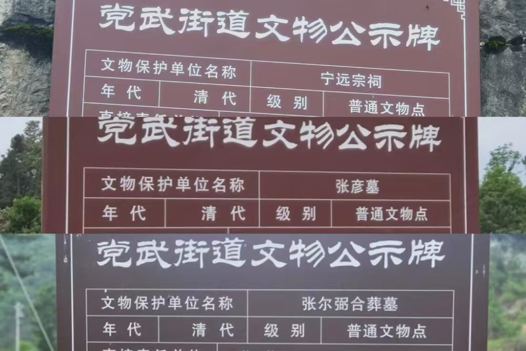 图3 宁远宗祠、张彦墓及张尔弼合葬墓的文物公示牌