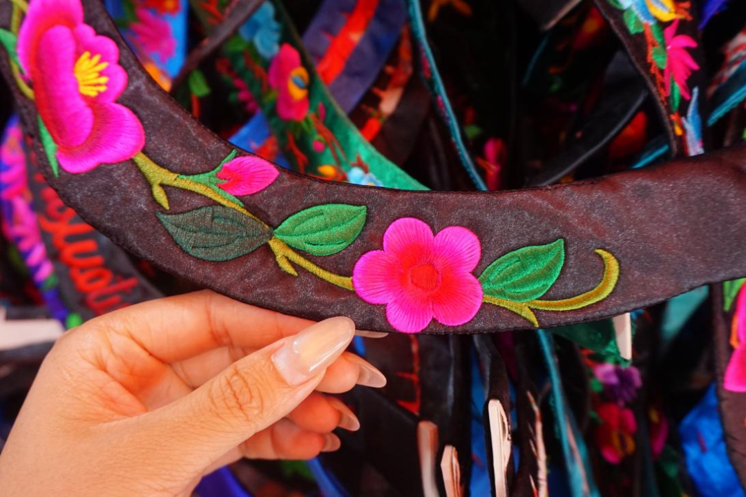 团队成员走进苗绣传承人家庭,通过与传承人面对面交流,详细记录了苗绣的技艺细节、图案寓意及传承故事。传承人现场展示了苗绣的挑花、刺绣等核心技法,其指尖下的山茶花和龙凤等图案栩栩如生,承载着苗族的历史与文化。实践团队队员们还鼓励当地青少年参与苗绣体验,并且共同听传承人讲述纹样背后的传说与故事,进一步激发了年轻人对本土文化的认同。