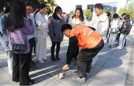 活动当天,校园里洋溢着热烈氛围。协会志愿者们提前布置好场地。在主持人解读“团队协作、闯关决胜”的规则后,同学们在协会志愿者的引导下以8—10人一组组队,推选队长、分工游戏角色,在角色分配中快速建立团队信任。