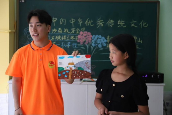 7月20日上午,宣讲队成员充分发挥专业能力,以“我眼中的优秀传统文化”为主题,组织社区儿童开展了手抄报比赛。活动中,为了更好地引导小朋友们充分认识民族文化也是中华优秀传统文化的一部分,宣讲队成员围绕什么属于中华优秀传统文化这一问题与社区儿童进行了互动,并对其涵盖范围进行了介绍。随后,宣讲队成员对手抄报形式进行了介绍,并开展了绘画教学,最后评选出了6件优秀的手抄报作品。