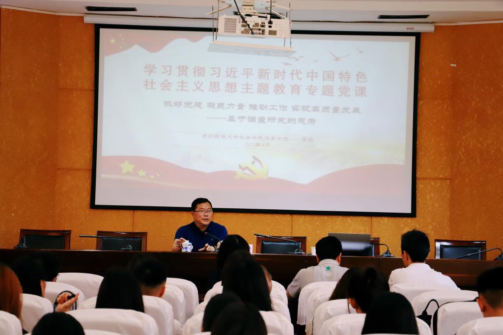 授课结束后,王林校长充分肯定了学院主题教育取得的阶段性成果,并就进一步开展好主题教育工作提出要求。王林校长强调,我们要牢记嘱托、感恩奋进,深入学习宣传贯彻落实党的二十大精神,坚定不移地以高质量发展统揽全局,学院要结合社会学的学科特色,深入践行推动贵州发展的职责使命,开展扎实的调查研究,将论文写在贵州大地上,在我省努力实现“四区一高地”主定位的奋斗目标中彰显民大担当、贡献民大力量。