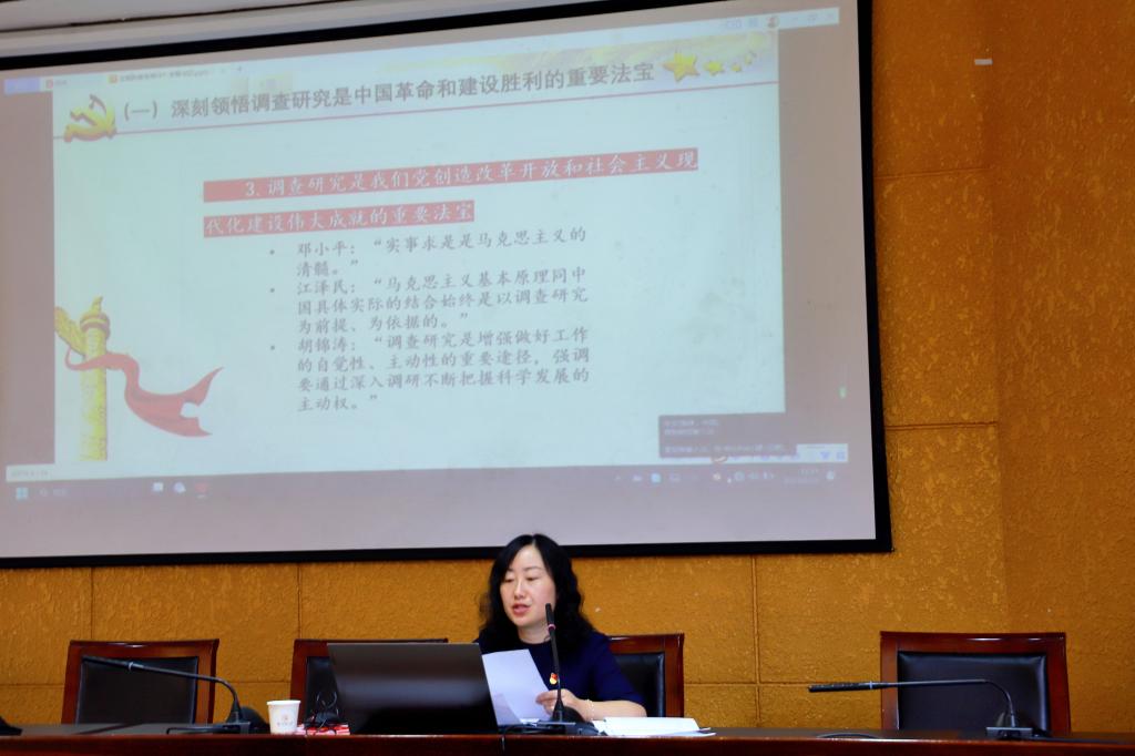 李黎指出,为深入学习贯彻习近平新时代中国特色社会主义思想,全面贯彻落实党的二十大精神,党中央决定,在全党大兴调查研究,作为在全党开展的主题教育的重要内容,推动全面建设社会主义现代化国家开好局起好步。调查研究是我们党的传家宝,是做好各项工作的基本功,也是我们党的优良传统。李黎从“理论学习体会与调查研究发现”“坚持问题导向,创新开展党建工作”和“严于律己,保持定力,抓好落实”三个方面开展授课,结合自身工作,分享自己的学习体会和思考。