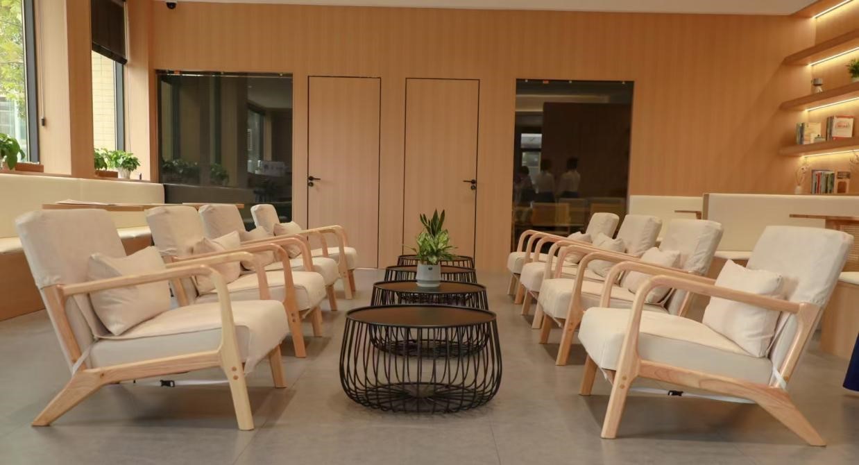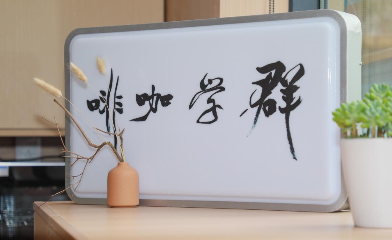 “群学咖啡厅”装修风格简约大方、清新自然,把咖啡文化与学术氛围巧妙地结合,为校区师生提供了一个学习阅读之余放松心情、轻松交流与迸发思想火花的场所。
