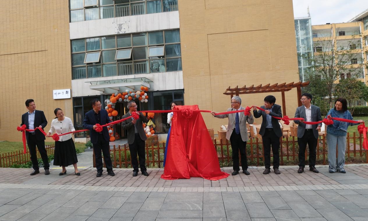 专家们和领导们移步至群学咖啡灯箱两侧,为“群学咖啡厅”揭牌。