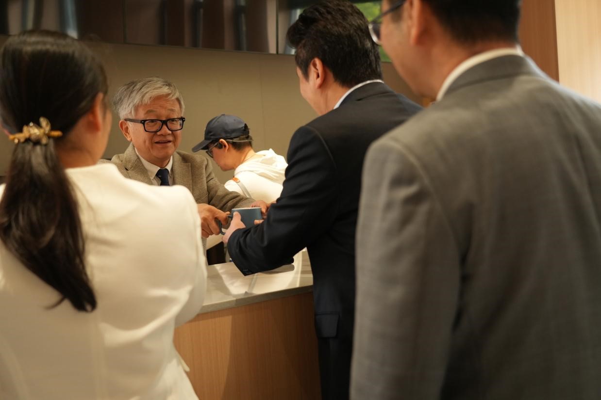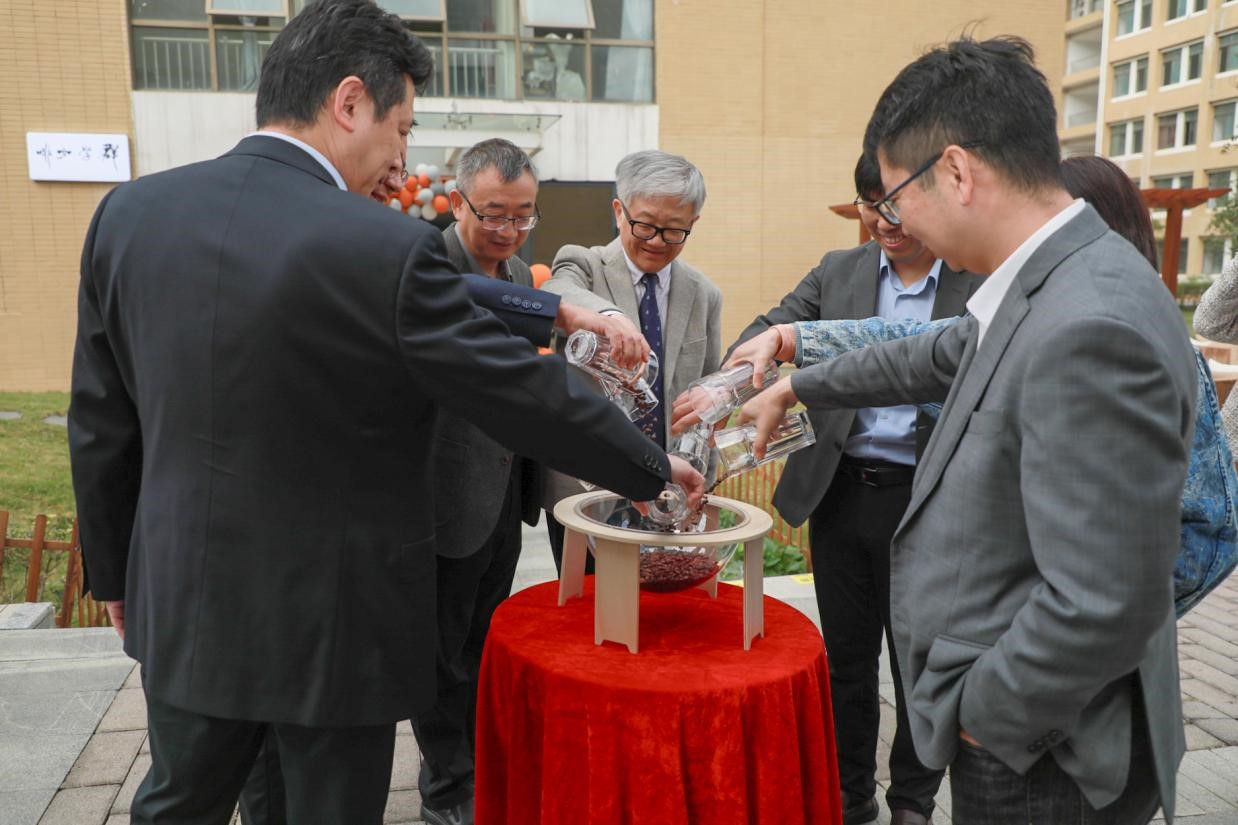 现场的各位专家、领导拿起圆桌上装着群学豆的杯子,一同将这些承载着希望与梦想的群学豆倒入玻璃器皿中,象征着群学咖啡汇聚各方精华,共创美好未来。