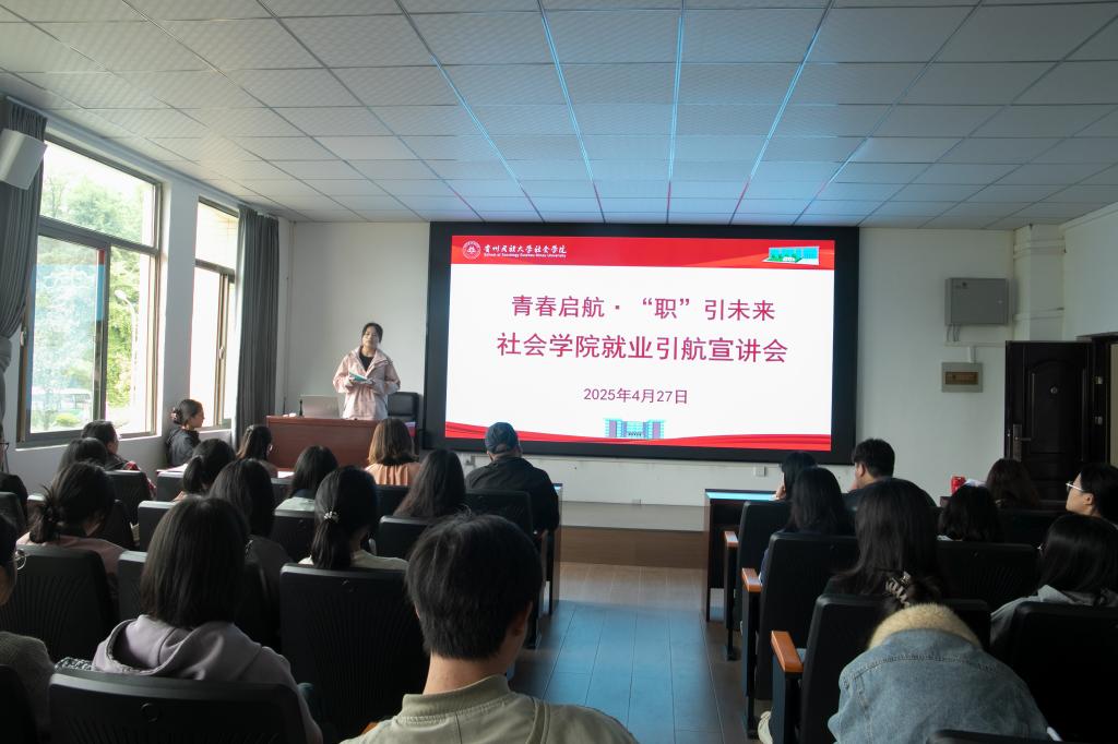 于4月27日、28日分别在学院A302、B106报告厅举办了就业引航宣讲会。学院党委书记李黎、学院党委副书记裴凡苗、辅导员文琴、王素霞、班主任贺军老师出席活动。2022级、2023级全体本科生参与此次宣讲会。