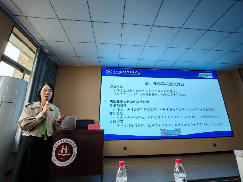 副院长卫松教授向全校介绍了教育部社会学专业虚拟教研室建设情况;社会学系贵州省金师康红梅教授汇报《农村社会学》课程思政建设情况;社会工作系胡彬彬教授根据《社会政策》课程进行了说课;毛刚强研究员介绍近年来社会工作开展社会服务的主要做法和下一步打算;课程思政协同建设的马克思主义学院孙雪雷老师对7mmtv