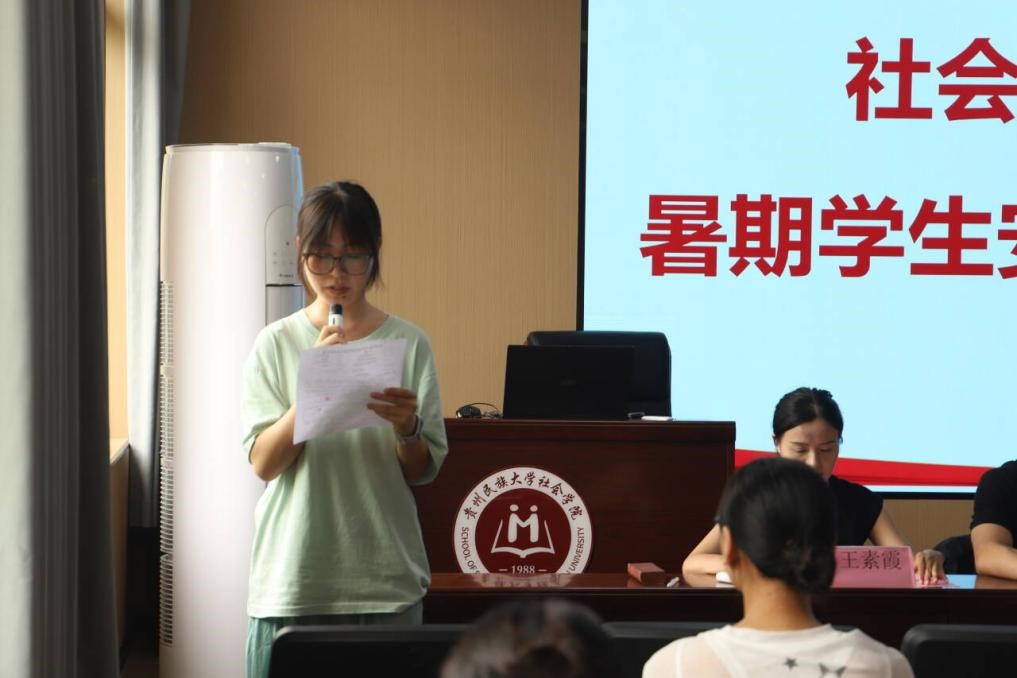 随后,与会教师分别就留校相关事项进行了强调与部署:蒋婕老师介绍了研究生暑期留校的整体情况,要求留校学生务必按规定每日汇报个人情况。同时,她特别强调同学们要珍惜时间,努力提升个人表达、面试等综合能力,为顺利毕业做好充分准备。贺军老师结合具体事例,重点提醒同学们要时刻警惕个人及环境安全,并严禁留宿校外人员。王晓晖副院长再次强调了安全的重要性,建议同学们充分利用假期时间进行有意义的学习或实践,出行时尽量结伴而行,确保人身安全。