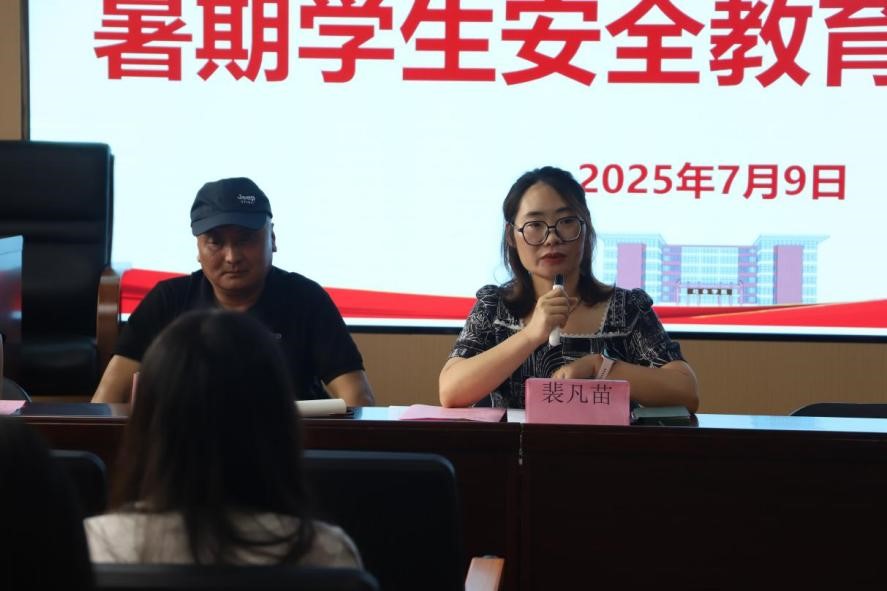 最后,裴凡苗副书记强调,要求所有暑期留校学生:一是牢固树立安全意识,筑牢思想防线;二是严格遵守校规校纪,落实管理制度;三是聚焦学业与健康,统筹假期规划;四是强化应急处理能力,畅通反馈渠道;五是发挥党员先锋作用,共建平安校园。她勉励留校学生坚定学习目标、合理安排假期,并祝愿大家度过一个安全、充实、收获满满的假期。