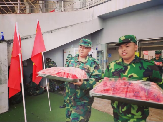 为缓解初秋训练的燥热,训练结束后,学院准备了清甜的西瓜,2025级新生主动从老师手中接过西瓜,并逐一递到同学的手中。冰凉的西瓜驱散了训练疲惫,训练场瞬间洋溢欢声笑语,新生们捧着西瓜露出笑容,纷纷感慨“学院的关怀特别及时”,训练热情也随之进一步高涨。