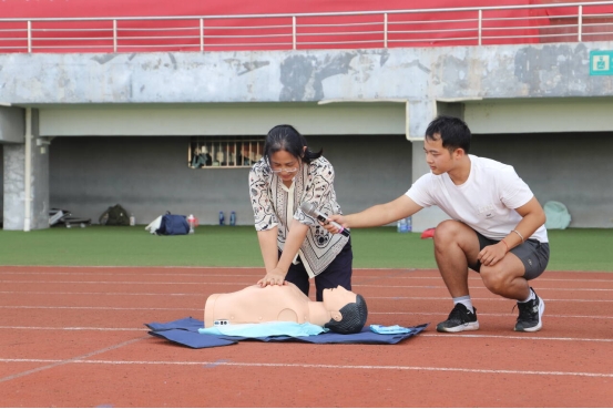 在北校区田径场组织面向全体大一新生开展应急救护专题培训。本次教学活动聚焦心脏骤停情境下的心肺复苏(CPR)与人工呼吸等关键技能,通过系统教学与实操训练,不仅传授“救人之技”,更着力培植“助人自助”的社工理念与人文关怀精神,增强了学生应对突发事件的信心与能力的同时,更是营造了“人人懂急救,人人敢施救”的校园安全氛围。