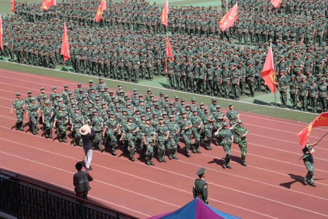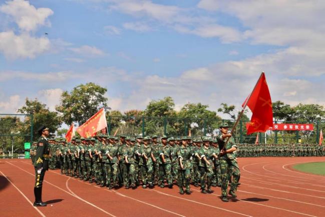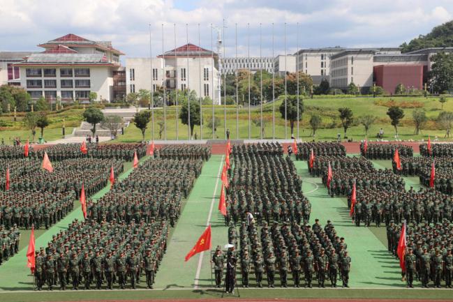 2025级新生军训汇演与表彰大会在南校区田径场隆重举行。全体新生迈着铿锵步伐接受检阅,伴随着激昂的《义勇军进行曲》,鲜红的五星红旗冉冉升起,汇演正式拉开帷幕,7mmtv