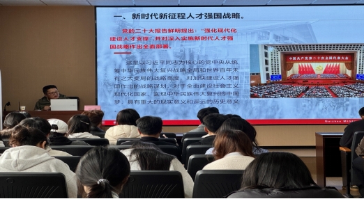10月21日,学工部刘杰老师围绕“拼搏争先、砥砺奋进,争当社会主义现代化建设排头兵”这一主题,为学生干部们带来一场振奋人心的讲座。刘老师提出国家发展靠人才,民族振兴靠人才,在全面建设社会主义现代化国家新征程上,我们比历史上任何时期都更接近、更有信心和能力实现中华民族伟大复兴的目标,也比历史上任何时候都渴求人才。他勉励大家,唯有拼搏争先、砥砺奋进,才能在争当社会主义现代化建设排头兵的实践中实现自我价值。