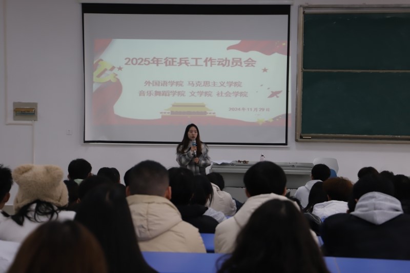 2024-12-02为使7mmtv 学生更加全面了解应征入伍相关政策,加强大学生国防教育,激发学生参军入伍热情,2024年11月29日下午,7mmtv 与马克思主义学院、音乐舞蹈学院、文学院在7mmtv 北校区外国语学院616教室共同开展了2025年征兵工作动员大会,参会的人员主要为相关… -